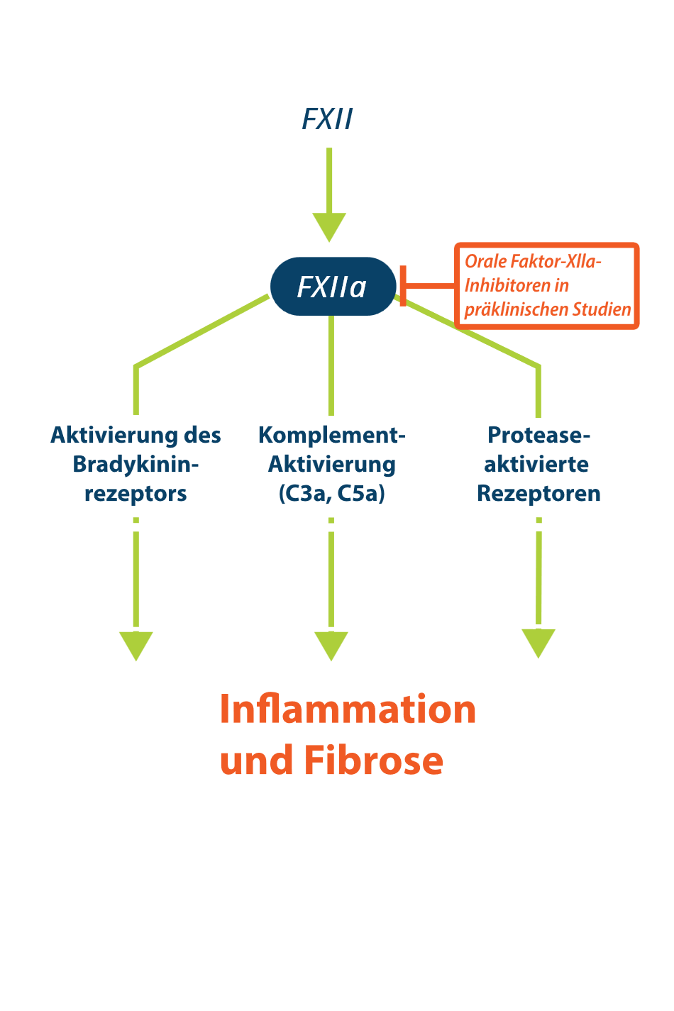 Faktor XIIa, der durch aktivierte Thrombozyten oder den Kontakt mit künstlichen Oberflächen medizinischer Geräte gebildet wird, aktiviert diese Kaskade. Dies kann zur Bildung von Thrombosen führen, die den normalen Blutfluss behindern.